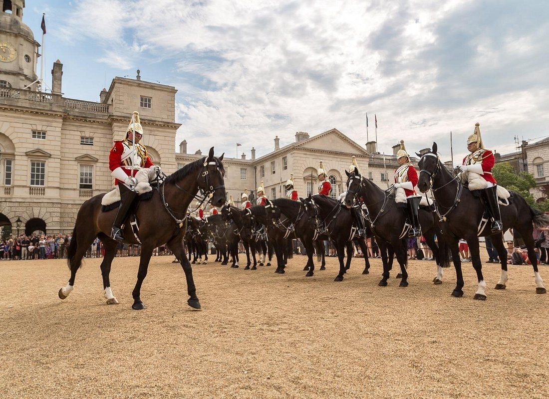 Ein Höhepunkt der Tour ist es immer, die weltberühmten Royal Guards in all ihrem Pomp und Prunk zu erleben. Je nach Tag können Sie den Wachwechsel in der Kaserne/im Palast oder die Prozession der Pferdegarde bei der Horse Guards Parade beobachten. Sie können auch ein Selfie mit den berühmten Wachposten am Eingang von Royal